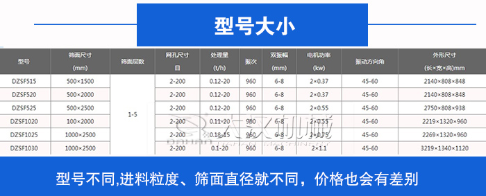 鋼纖維直線振動(dòng)篩有DZSF-515、DZSF-520、DZSF-530、DZSF-1020、DZSF-1030、DZSF-1540等標(biāo)準(zhǔn)型號,因型號的不同他們的進(jìn)料粒度、篩面直徑存在較大的差異,在生產(chǎn)中可以為用戶帶來的市場盈利也有所不同,進(jìn)而廠家對于市場上型號不同的鋼纖維直線振動(dòng)篩價(jià)格定位也有區(qū)別。