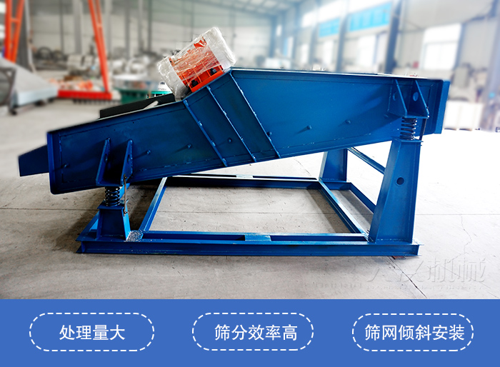 上振式直線振動篩采用振動電機(jī)做為激振源,調(diào)節(jié)振動電機(jī)激振力的大小,可以改變篩機(jī)的振幅。