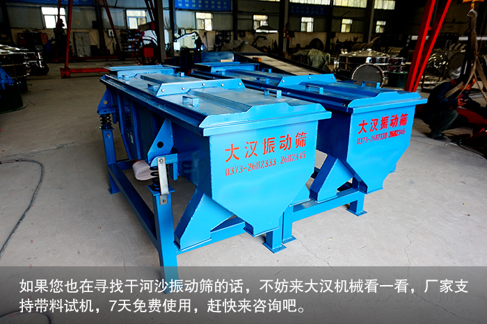 綜上,干河沙分級選用直線振動篩不僅能滿足精度要求,還能實現多層分級作用,篩分效率和蟬聯高,如果您也在尋找干河沙振動篩的話,不妨來大漢機械看看,廠家支持帶料試機,7天免費使用,趕快來咨詢吧。